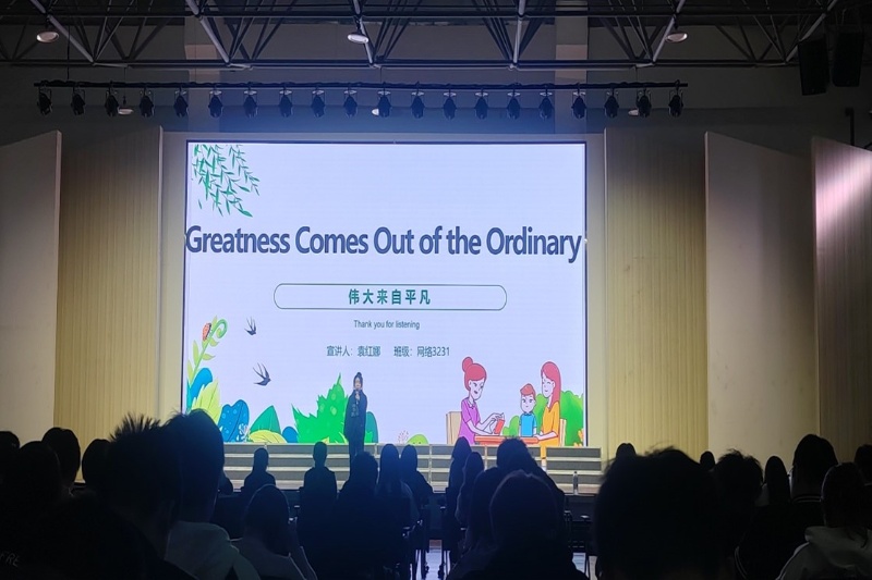 在定题演讲环节,主题“Greatness Comes out of the Ordinary”激发了参赛选手们的无限热情。选手们紧扣主题,用流畅的英语讲述着平凡中的伟大。有的从生活小事说起,有的以名人事迹为例,展现出学生们深刻的理解和优秀的语言组织能力。学生们清晰的发音、自信的神态,使得每一个观点都如同一颗颗种子,深深植入观众的心田,引发共鸣。