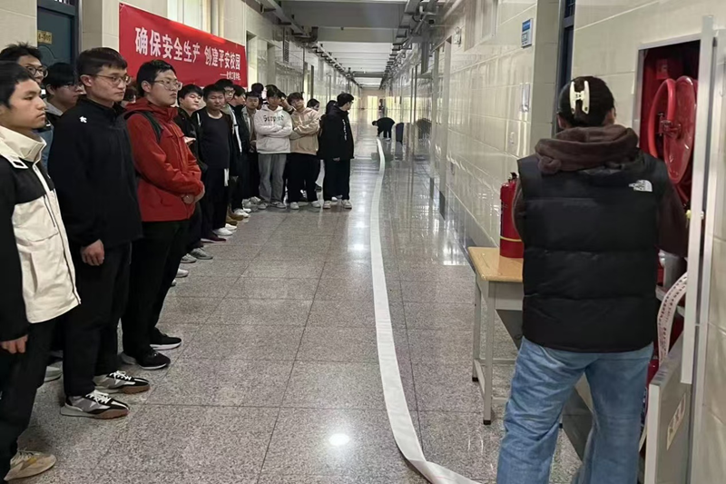 11月12日下午,消防专业教师李斐围绕“全民消防,生命至上”主题,在北校区四号教学楼,向同学们介绍了灭火器的分类,灭火器的使用方法及注意事项,演示如何正确使用灭火毯及灭火器,以及室内消火栓的原理及使用方法。同学们踊跃参与灭火演练,体验学习。本次学习演练结束后,大家表示要更加牢固树立消防安全意识,熟悉掌握消防安全知识和灭火知识。