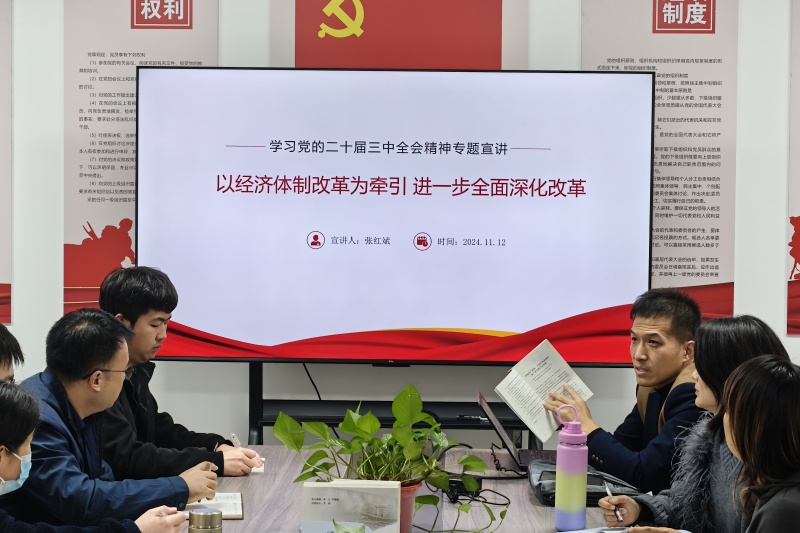 为深入学习贯彻党的二十届三中全会精神,2024年11月14日,建筑工程学院党总支特邀请马克思主义学院张红斌老师在党员之家以《以经济体制改革为牵引 进一步全面深化改革》为题,给全体教职工和部分学生积极分子带来了一堂丰富的党课。