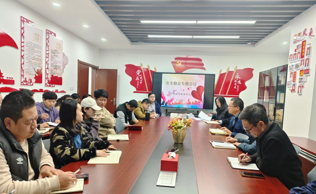 2024年11月18日下午18:00,计算机与软件学院召开安全稳定工作专题会议,计算机与软件学院院长郭立文、党总支书记王勃,办公室、学生科,以及全体专兼职辅导员老师参加了此次会议。