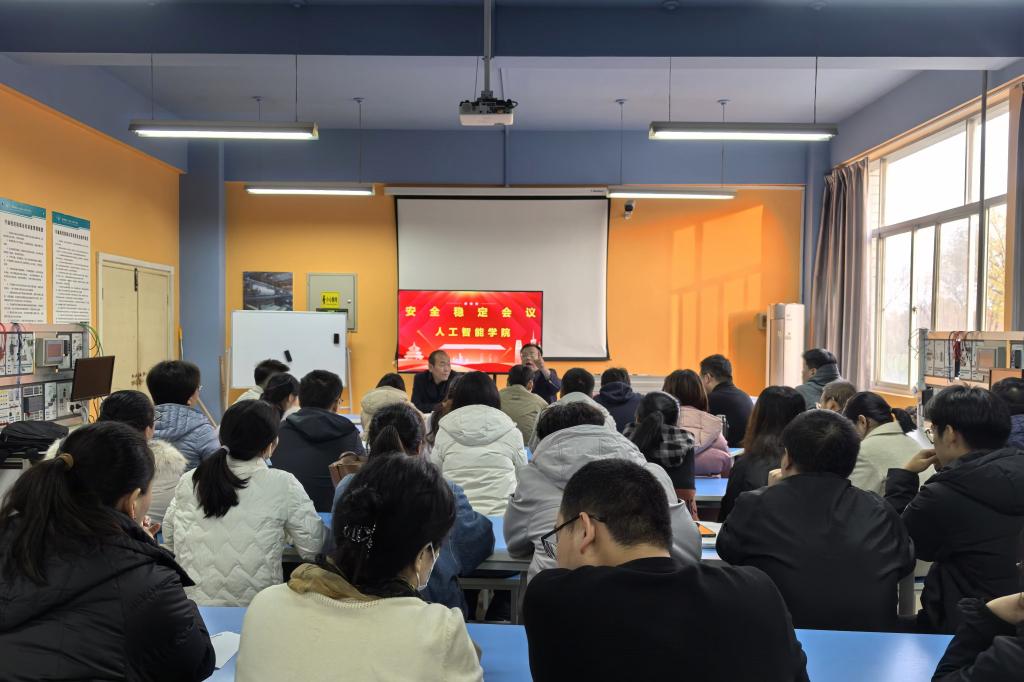 为了深入贯彻落实学校安全稳定工作会议精神,有效防范和化解各类安全隐患,确保师生身体健康与生命安全,11月19日下午,人工智能学院在8-208召开了安全稳定工作专题会议。本次会议由学院党总支书记张双琦主持,全体教职工参加了此次会议。