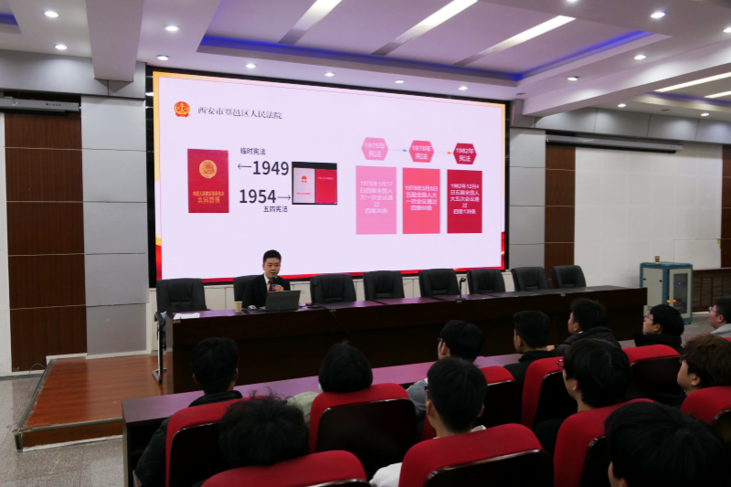 为深入学习贯彻习近平法治思想,切实加强青年大学生的法治教育、提升法治素养,推进校园法治文化建设,2024年11月21日,马克思主义学院联合西安市鄠邑区人民法院在教二报告厅开展了“习近平法治思想”进校园的主题宣讲活动。此次活动特邀西安市鄠邑区人民法院民事审判二庭杨向荣法官开展宣讲,马院教师代表及24级学生共计200余人参加了宣讲学习,活动由马院思法教研室主任李航主持。