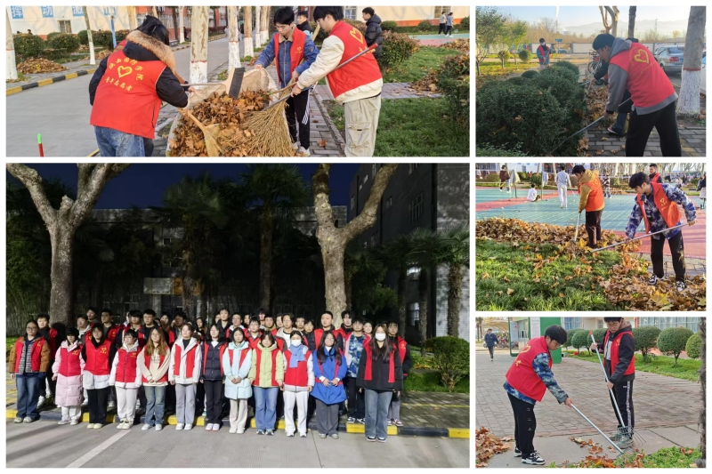 活动中,60名入党积极分子志愿者们身穿红马甲,手持扫把、垃圾钳、垃圾袋、落叶耙等工具化身“环境清理师”,对校园内的道路、绿化带等公共区域的落叶、垃圾等进行了全面清扫。忙碌的身影穿梭在校园中,大家各司其职、分工明确,各个环节有条不紊。经过两小时的劳动,校园环境焕然一新。