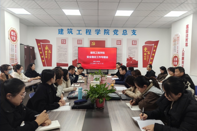 为进一步提高教职工安全意识并做好校园隐患排查工作,2024年11月21日下午,建筑工程学院在党员之家召开了安全稳定工作专题会。