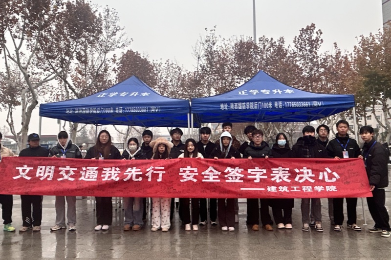 为增强学生的交通意识,规范学生的交通安全行为,营造良好的生活环境。建筑工程学院于2024年12月12日在博远楼前举办 “文明交通我先行 安全签字表决心” 签字活动。这是我们对自身安全和社会文明的责任承诺。交通安全关乎家庭幸福和社会和谐。