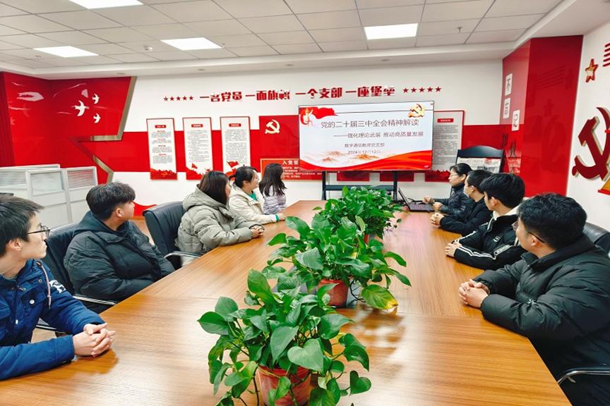 为深入学习贯彻党的二十届三中全会精神,12月12日下午,电子信息学院党总支数字通信教师党支部书记王海梅在党员之家讲授“党的二十届三中全会精神解读——强化理论武装推动高质量发展”专题党课,支部党员教师、学院学生代表参加学习。