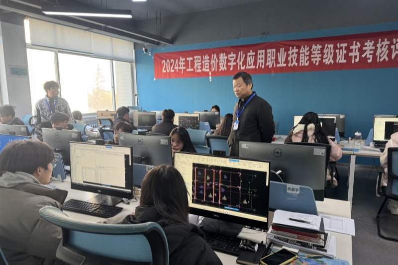 为贯彻落实《关于推进1+X证书制度试点工作的指导意见》文件精神,高质量推进职业技能等级证书制度试点工作,12月15日上午,建筑工程学院顺利完成了2024年工程造价数字化应用职业技能等级证书(初级)考试认证工作,共有来自工程造价专业37名学生参加考试。为保障考核工作的顺利进行,建筑工程学院组织老师们完成了考核站点的申报、学生辅导、选拔报名、考务实施等,考核采用机考形式,考试时间为9:00-12:00,本次职业技能认证考试在陈蓉、王飞腾、桑丹、周润玉、梁超老师的努力配合组织下顺利完成。