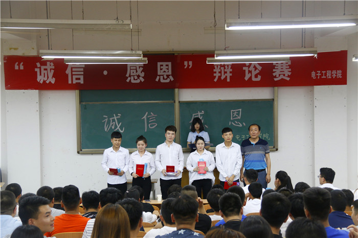 5月17日晚上19:30,电子工程学院以“诚信•感恩”为主题辩论赛”总决赛在教3-233教室举行,共有四对进行决赛比拼,同学们围绕着感恩是一种品德还是责任,是源于社会还是个人进行了激烈的辩论,整个过程中正方和反方都能列举出充分的论证和论据进行辩驳,维护自己的观点,经过激烈的角逐:信息3163班荣获得一等奖、电子3162班荣获二等奖、电子3171班荣获三等奖、无人机3171班荣获优秀奖。