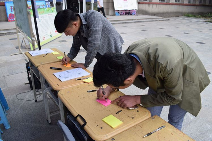 同学们纷纷留言,抵制抽烟行为,借此机会呼吁更多的同学对烟草说NO。活动现场还组织了烟具的展示,将学生会同学在公寓查宿时查到的烟、打火机进行了现场展示。为了加大无烟校园的宣传力度,现场还有同学向广大学生发放无烟宣传单页。对于同学们的抽烟行为,老师严厉处置,不断督促吸烟同学要改掉抽烟的习惯。对于有抽烟习惯的同学,老师们也是恨铁不成钢。为了同学们能够拥有一个健康的身体和舒适的学习环境,基础课部的辅导员老师也参与到了此次活动中,和同学们并肩作战。活动现场还有一部分学生为了抵制抽烟行为,特意做了手抄报,起到了警示作用。每一个留言就是一份力量,希望更多的力量汇聚到一起来抵制校园抽烟行为。让我们时刻谨记:吞咽等于慢性自杀,吐烟等于谋财害命。