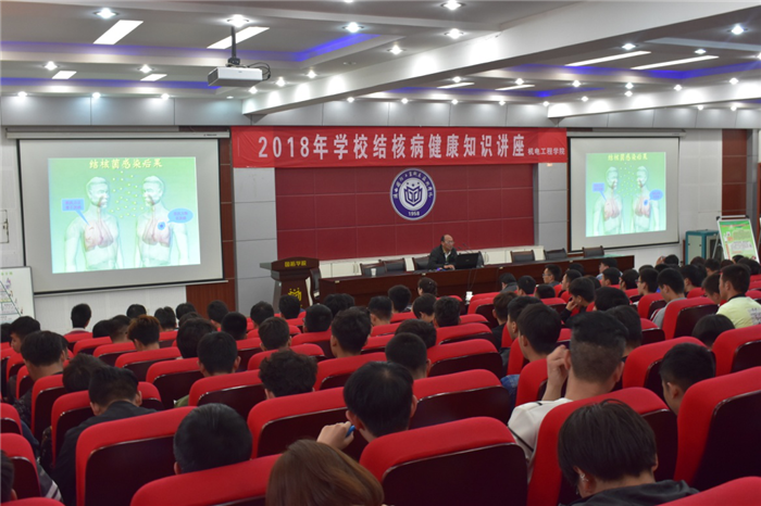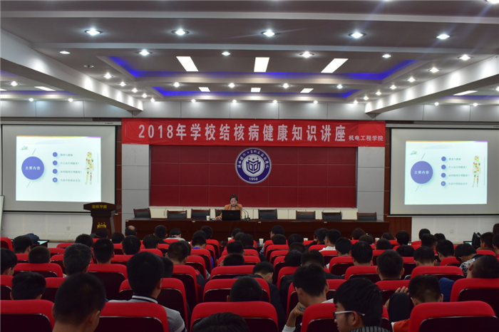 为加强春季传染病防控及肺结核预防工作,做好常见传染病防治知识的宣传教育,帮助学生增强健康意识。2018年4月25日机电工程学院在教二报告厅举办了”2018年学校结核病健康知识讲座”,此次知识讲座邀请了鄠邑区疾控中心结核病防治科科长肖展奇和健康教育科科长王甜两位医生,机电工程学院党总支书记殷兴光教授、全体专兼职辅导员及学生代表近300人参加了此次讲座,此次讲座由学生科负责人杨永春老师主持。