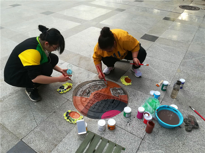 下午4:30,身怀绝技的同学们准时集合在教一楼前广场。骄阳似火,同学们的热情更胜一筹,负责运送彩绘材料的同学忙前忙后调试颜色,不亦乐乎。负责绘画的同学们认真勾勒轮廓,胸有成竹,落笔无悔。不时有围观的同学上前欣赏,只见绘画小能手们先从粉笔线稿起型开始,一步步调色渲染,没过多久,校园的石墩、井盖上陆续出现一个个精致有趣,富有创意的涂鸦,其中,富有运动阳光气息的篮球、呆萌又充满灵气的猫咪、活泼可爱的表情包、色调明艳的平底锅煎蛋、复古忧郁气质的黑白照片等作品都令人眼前一亮。活动现场,一幅幅色彩斑斓、栩栩如生的作品为春日的校园增添了许多浪漫气息,往日古朴的校园也因这群活泼开朗的涂鸦者充满了蓬勃生机。来往师生纷纷点头称赞,不时饶有兴致地拍照留念,热闹非凡的涂鸦使整个校园重新焕发出光彩和生机,让陈旧的井盖、普通的石墩瞬间变成艺术作品。