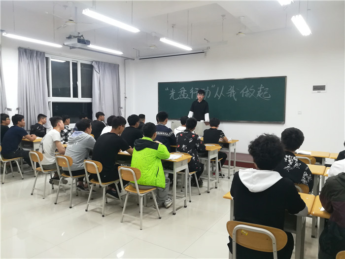 3月25日晚自习,化工学院组织各班级开展了“光盘行动”主题班会,同学们通过讲事实,摆数据,说明“谁知盘中餐,粒粒皆辛苦”的道理,同时普及宣传了“光盘行动”的相关知识,了解“光盘”的重要意义。