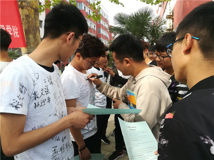 3月30日化工学院面向所有国防学子举办了“光盘行动”的签名活动,广大师生们积极参加此次活动,纷纷在宣传横幅上、T恤衫上签名,承诺:既要做“光盘行动”的实践者,也要做“光盘行动”的推动者,大家一起努力,让更多的人了解“光盘行动”,参与“光盘行动”。