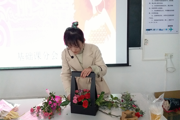 3月7日下午,基础课分会组织全体女教师开展了庆三八插花活动。分会请来了专业老师,为基础课部的老师们介绍了几种常见的鲜花及培育方法,同时也讲解了插花艺术的技巧。