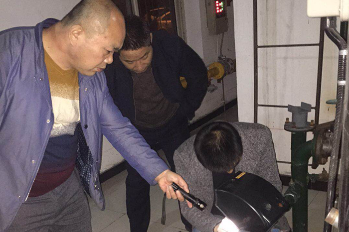 发生紧急故障后,在处长的安排下,后勤处积极联系维修人员,经过查找故障点,寻购配件,重新安装,多次试机,历时9个多小时的抢修,锅炉燃烧机终于在11月13日凌晨重新启动,茶水锅炉正常工作,保证了广大学生的正常饮水。