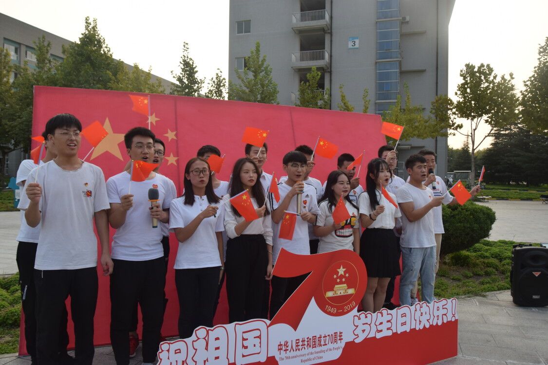 随后,全体与会人员各自组队,他们用饱满的精神、优美的歌声演唱了《国家》、《没有共产党就没有新中国》、《五星红旗》、《我的中国心》、《歌唱祖国》等一首首集中表现对祖国的赞美和新中国成立70周年来祖国变化的歌曲,唱出了大学生爱国的最强音。最后,全体人员挥动着手中的国旗、带着无比喜悦的心情一起合唱《我和我的祖国》,高呼“祝伟大祖国70周年生日快乐”,活动在一片欢呼声中落下帷幕。