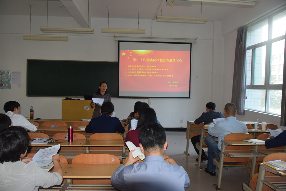 9月26日下午,新利体育官方网站党委组织全体党员召开纪律教育专题学习会,会议由新利体育官方网站党委书记沈惠主持。