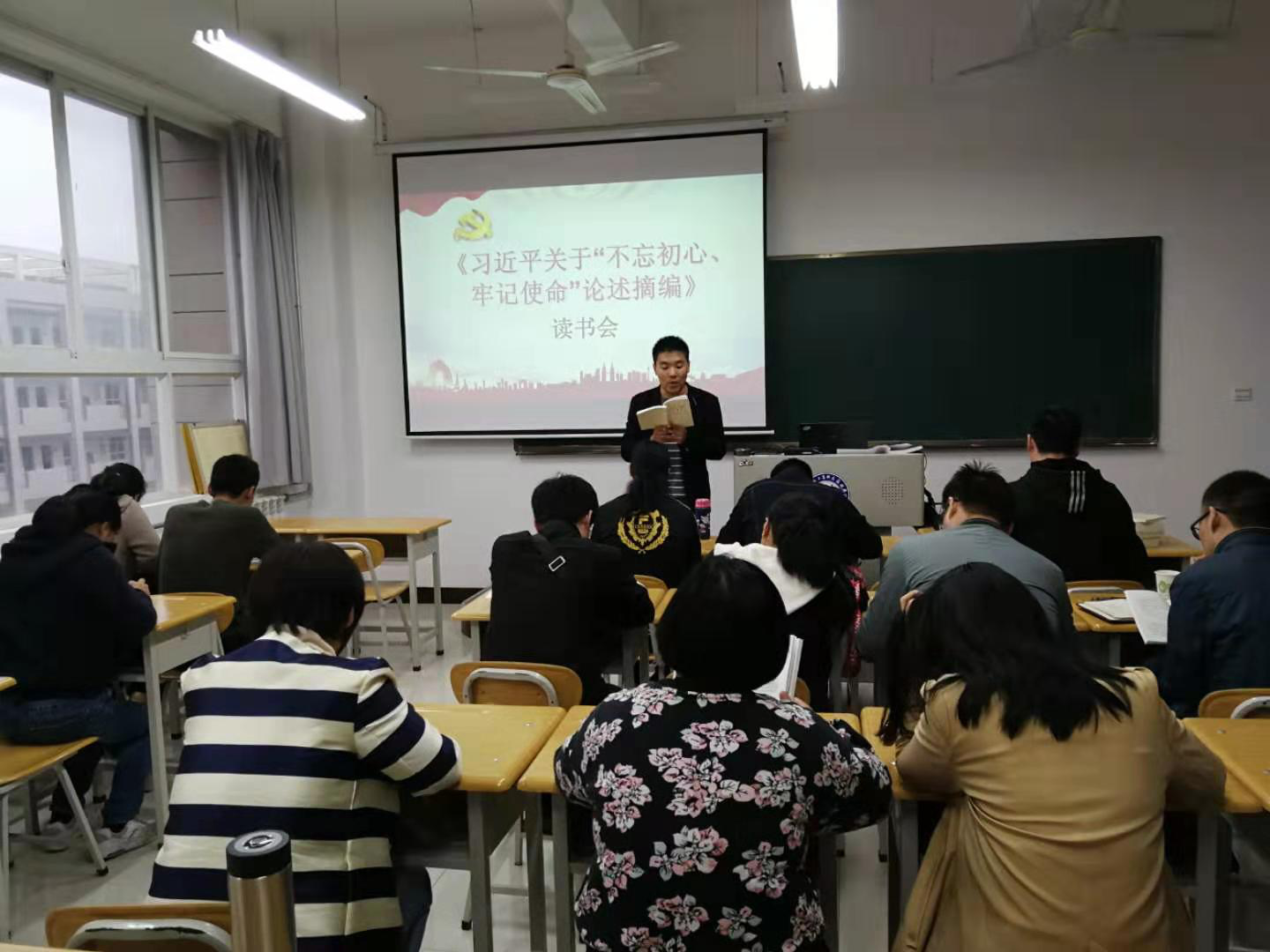 党课结束后,化工学院党总支举办了第二次“不忘初心,牢记使命”读书会活动,全体党员以读书会的形式集中学习了《习近平关于“不忘初心,牢记使命”论述摘编》内容,还学习了习近平总书记关于“不忘初心,牢记使命”主题教育系列重要讲话精神,进一步夯实了理论基础。