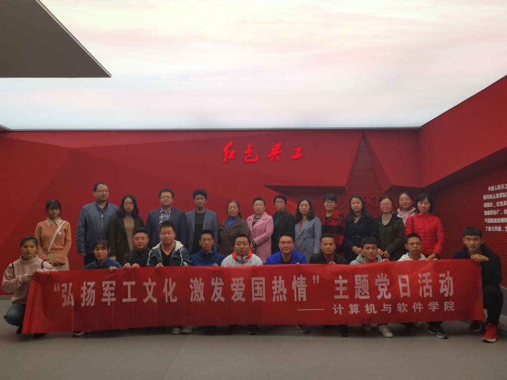 为充分发挥军工校园文化特色,激发广大教职工党员和学生党员的爱国热情,进一步推进“不忘初心 牢记使命”主题教育,10月31日下午,计算机与软件学院党总支组织分院师生党员在我校国防科技展馆组织开展“弘扬军工文化 激发爱国热情”主题党日活动。