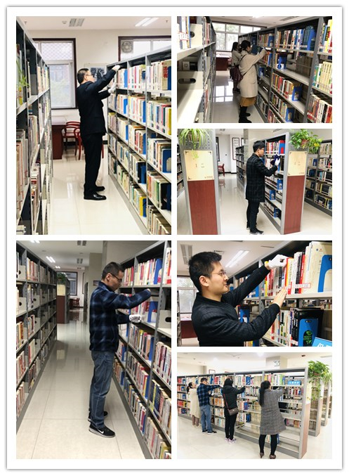 在二楼阅览室,党员们将借阅的图书一一归还到书架上;认真擦洗布满灰尘的书架并整理书架上混乱的书籍。在活动开展过程中,杨书记谈到,图书馆工作杂乱而繁琐,需要极强的耐心和细心,希望我们的党员同志们,继续发扬这种不怕辛苦,一丝不苟的精神,把工作做细做好。