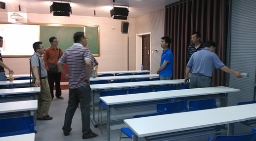 6月2日,西北政法大学教务处张副处长一行八人到我院考察课程录播系统。信息处接待并介绍了学院课程录播系统项目建设、运行等情况。张副处长一行人就全自动录播教室的装修设计、系统软硬件配置等情况进行了解,观看了教学片,随行的技术人员对系统进行了试操作。