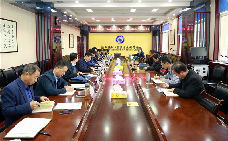 在交流研讨环节,校领导紧扣《高校、委厅直属单位开展“不忘初心、牢记使命”主题教育工作方案》要求,以习近平新时代中国特色社会主义思想为指导,深入贯彻落实党的十九大精神和习近平总书记在“不忘初心、牢记使命”主题教育工作会议上的重要讲话精神,围绕“对标检视找差距—有关我校“双高计划”核心指标存在的问题和差距,下一步采取的措施”主题,结合学习内容,开展学习研讨。