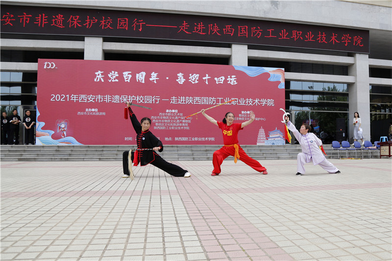 为弘扬中华传统优秀文化,坚定文化自信,更好地保护与传承好非物质文化遗产,2021年5月13日,“庆党百周年,喜迎十四运”2021年西安市非遗保护校园行活动在我校顺利举办。西安市和鄠邑区相关部门负责人、展演非遗项目的传承人,以及500多名师生代表和媒体记者参加活动。活动期间,党委书记张卫平、校长刘敏涵亲切慰问了参演嘉宾。