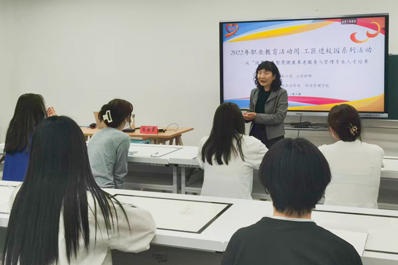 【工匠进校园主题报告】5月12日下午,由校企合作处和经济管理学院联合主办的“2022年职教活动周--工匠进校园系列活动”在19号楼603教室成功举行。在国际护士节到来之际,西安交通大学附属第二医院原护理部主任朱云霞老师应邀为智慧健康养老服务与管理专业师生开展讲座,讲座主题是:从“国赛”看智慧健康养老服务与管理专业人才培养。智慧健康养老服务与管理专业负责人谈笑老师主持本场讲座,智慧健康养老服务与管理全体师生参加了本次讲座。