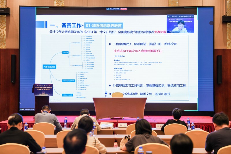 2024年9月20日受邀参加闽琼桂三省(区)职业院校信息素养大赛暨高职院校图书馆AI智能化知识服务研讨会,并做题为《AI智能化背景下信息素养教育及信息素养大赛备赛经验》的专题报告,重点解读了全国信息素养大赛文件,分享了我校人工智能背景下信息素养教育改革情况、信息素养大赛备赛经验并分享了我校国赛获奖选手检索报告。