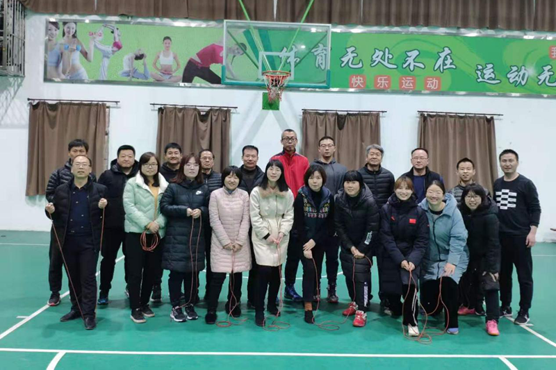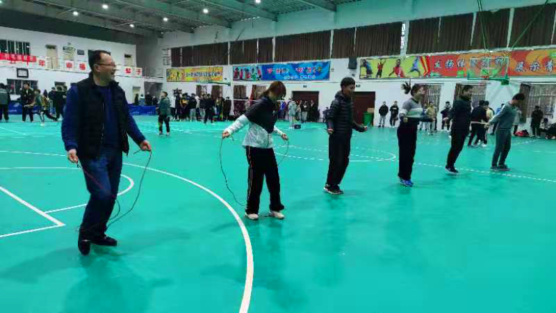 为响应“全民健身”号召,丰富教职工文体生活,鼓励教职工积极参加体育运动,增强个人体质,以健康的体魄和饱满的精神投入到本职工作,本着“锻炼为主,重在参与”的原则,11月24日下午4点30分,基础分会教职员工在我院大学生活动中心组织开展趣味跳绳比赛活动。