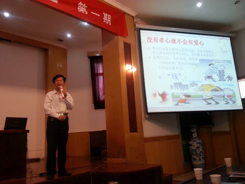 讲座开始,张书记播以一封《一位心酸父亲写给大学生儿子的信》开场,师生认真聆听、热泪盈眶、激动不已;接着张书记从“做人说起”、“ 中华民族以孝道而立”、“孝道是做人的准则”、“如何尽孝道”等方面阐述了中华民族传统孝道文化的深厚内涵,激发了大家学习传统孝道文化,传承中华美德的动力和热情;张书记还向大家谈了自己对父母多年养育恩情的感想,使在场的同学们深切体会到自己应该怎样去践行孝道文化,感恩父母;感动之余,现场学生们纷纷纷发表感悟,表示要感恩父母,力尽孝道,并做出庄严承诺。