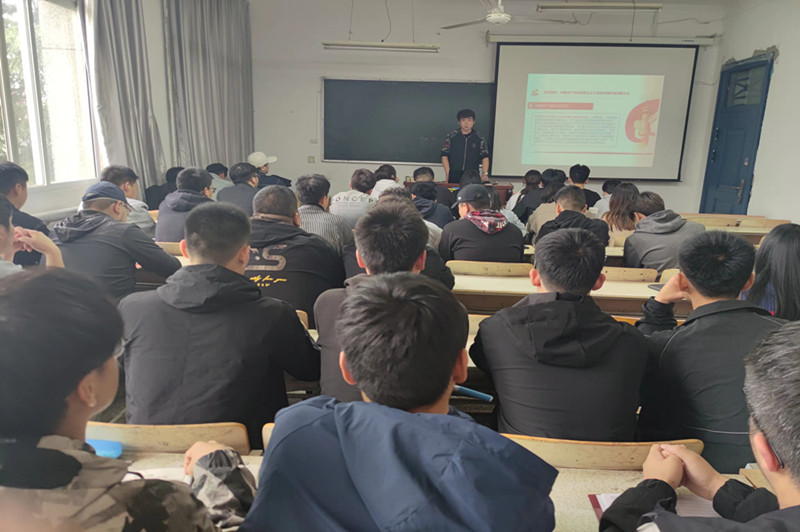 根据陕国职学工党委字〔2021〕1号文件《关于成立我校党史学习教育大学生宣讲团的通知》和陕国职院团发〔2021〕9号文件《关于2021年4月学生会思想理论学习安排的通知》相关要求,基础课党总支于2021年4月20日下午,在南校区教1-314教室进行党史学习教育宣讲和学生会思想理论学习活动,基础课学生党支部全体积极分子、预备党员,学生会干部及成员参加此次学习,学习活动由基础课学生党支部书记余腾飞老师主持。