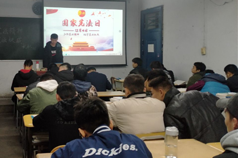 基础课部围绕“以习近平法治思想为引领,深入学习宣传宪法”的主题,组织各班级于2021年11月28日开展宪法学习主题班会,重点学习宣传习近平法治思想。2021年12月3日上午组织学生通过普法网观看直播、同步参与第八届国家宪法日“宪法晨读”活动,努力营造宪法学习宣传教育的良好氛围,推动宪法真正走入广大师生的日常生活。