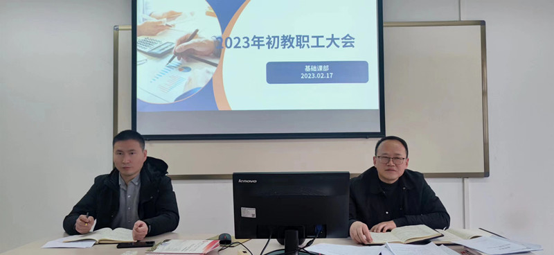 基础课部于2023年2月17日在北区5-607语音室召开开学初工作会议,会议由基础课党总支书记权华主持,基础课部全体教职工参加。会上,杨文革主任传达2月13日中层以上领导干部会议的精神,并对课部开学初相关工作进行了安排部署,强调教师们要立足本职岗位,上好每一节课,注重教学效果,让学生学有所获,注重教学设计,从学生的角度设计好每一节课。各教研室要扎实有效地开展好教研活动,达到提高业务水平和业务能力的目标,强调要做好各项基本工作,保障教学平稳有序进行。最后,勉励全体教师新学期够砥砺前行,在各自岗位上为学校的发展贡献自己的力量。随后,权华书记就党风廉政建设工作做了相关部署安排,强调各位教师要廉洁自律,严于律己,紧绷廉洁自律这根弦,加强师德师风建设。