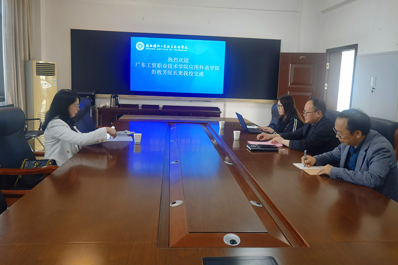2023年3月30日,广东工贸职业技术学院应用外语学院院长彭枚芳教授来我校交流,会议由基础课部主任杨文革主持,外语教研室相关人员参加了此次交流活动。