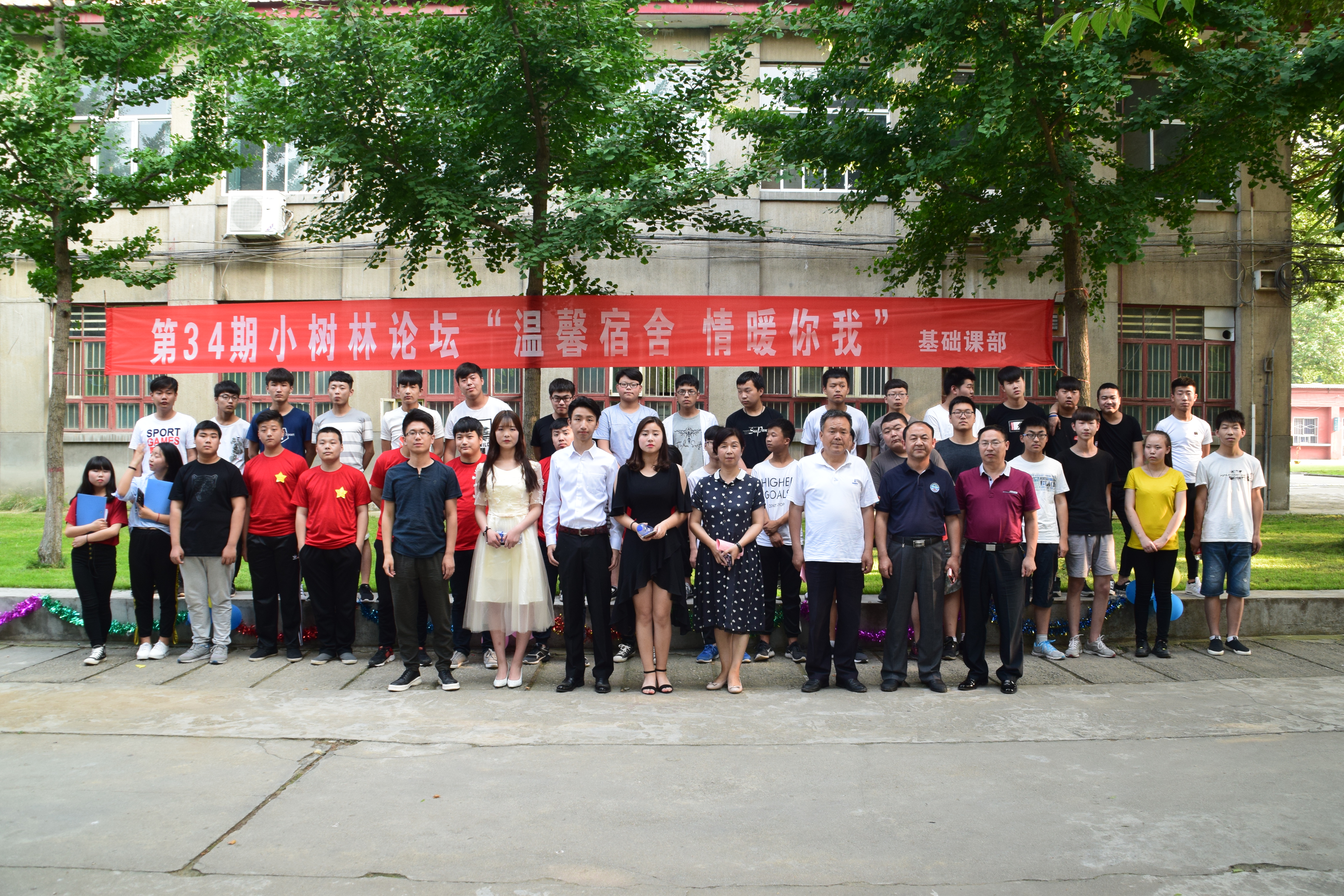 为了丰富同学们的课余文化生活,宣传社会主义核心价值观,由基础课部承办的以“温馨宿舍 晴暖你我”为主题的第三十四期“小树林论坛”于 6月15日下午4:30在我院南校区小树林顺利举行。