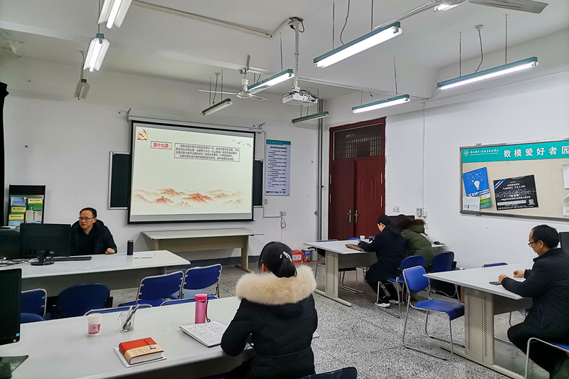 2020年12月29日,基础课党总支数学教师党支部书记赵兹为全体党员上党课,党课以《不忘初心牢记使命》为题,从“走不回来的小和尚”开始引入初心主题,并从一名教育工作者出发,详细阐述教师党员的初心和使命。最后向全体党员发出呼吁,教师是中华文化的传播者、引导者,我们更应坚守心中的理想与信念,不忘教育初心,牢记教师使命,砥砺前行,方得始终。