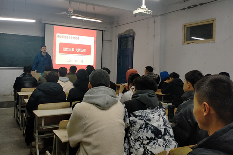 2021年11月18日晚,基础课团总支组织全体团员在南校区1-317教室开展专题团课,此次团课有基础课团总支书记余腾飞讲授,余腾飞以《建党百年 光辉历程》为题,围绕救国、兴国、富国、强国、百年历史总结等五个方面带领同学们进行党史专题学习。并向同学们强调:中国共产党的百年奋斗历史,积淀形成了一系列光荣传统和优良作风,是我们党性质和宗旨的集中体现,我们要通过学党史悟思想,掌握其精神实质,从而达到明理、增信、崇德、力行。