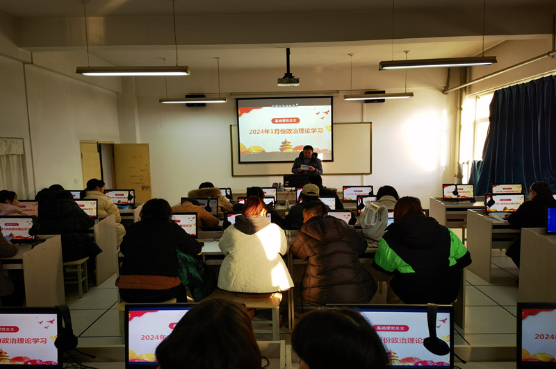 根据陕国职党宣〔2024〕1号文件《关于2024年1月教职工政治理论学习暨组织活动安排的通知》相关要求,为进一步加强基础教职工的政治理论学习,切实提高教职工政治素质和理论水平,基础课党总支于2024年1月4日在北区5-607语音室开展1月教职工政治理论学习,会议由党总支书记权华主持。