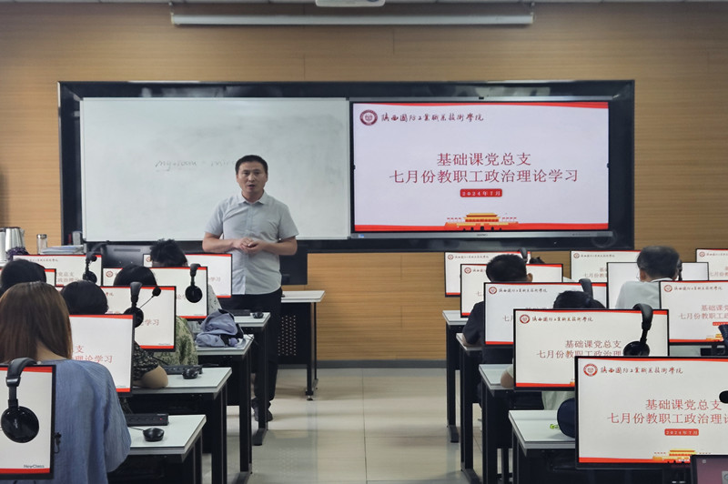 根据陕国职党宣〔2024〕12号文件《关于2024年7月教职工政治理论学习暨组织活动安排的通知》相关要求,为进一步加强基础教职工的政治理论学习,切实提高教职工政治素质和理论水平,基础课党总支于2024年7月4日在北区5-604语音室开展7月教职工政治理论学习,会议由党总支书记权华主持。