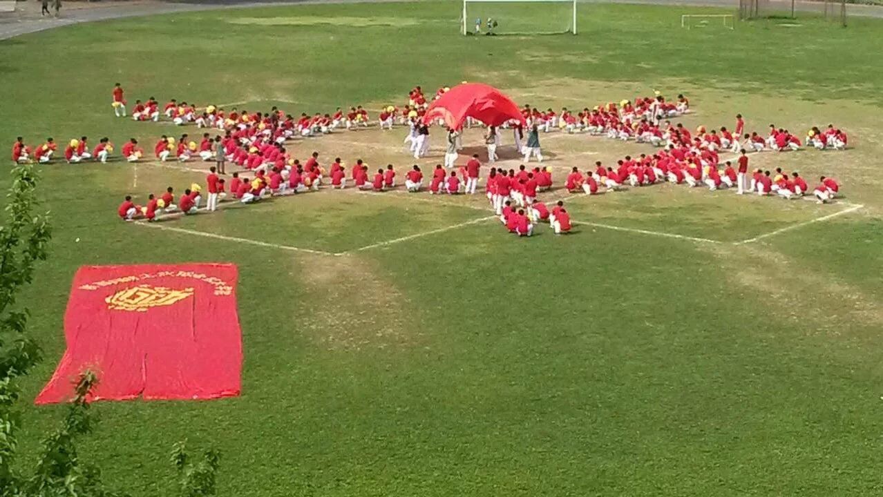 开幕式精彩连连,为我们不断带来惊喜。在蓝天白云绿草的映衬下,基础课部280人的大型团体操整齐划一的表演着,表达着团结与友爱,展示出学子们的自信和热情。