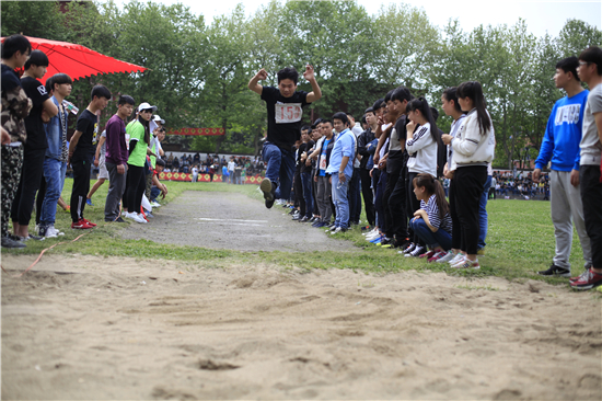 操场外同学们的喝彩声激励着他们不断地激发潜力,刷新纪录。在这里,比赛的结果已不再重要,比赛的过程证明了他们就是英雄!