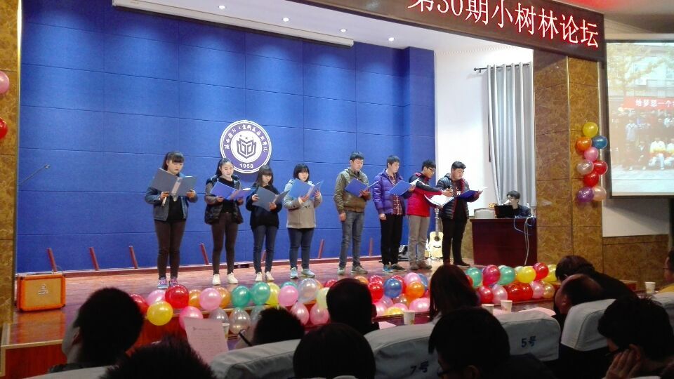 2016年12月7日下午4:30,由基础课部承办的第30期小树林论坛“有你有爱 孤独不在”,在我校南区报告厅圆满举办。基础课党总支书记杨文革老师、学保处杨永春老师以及基础课部全体辅导员、教官和350多名学生参加了本次活动。