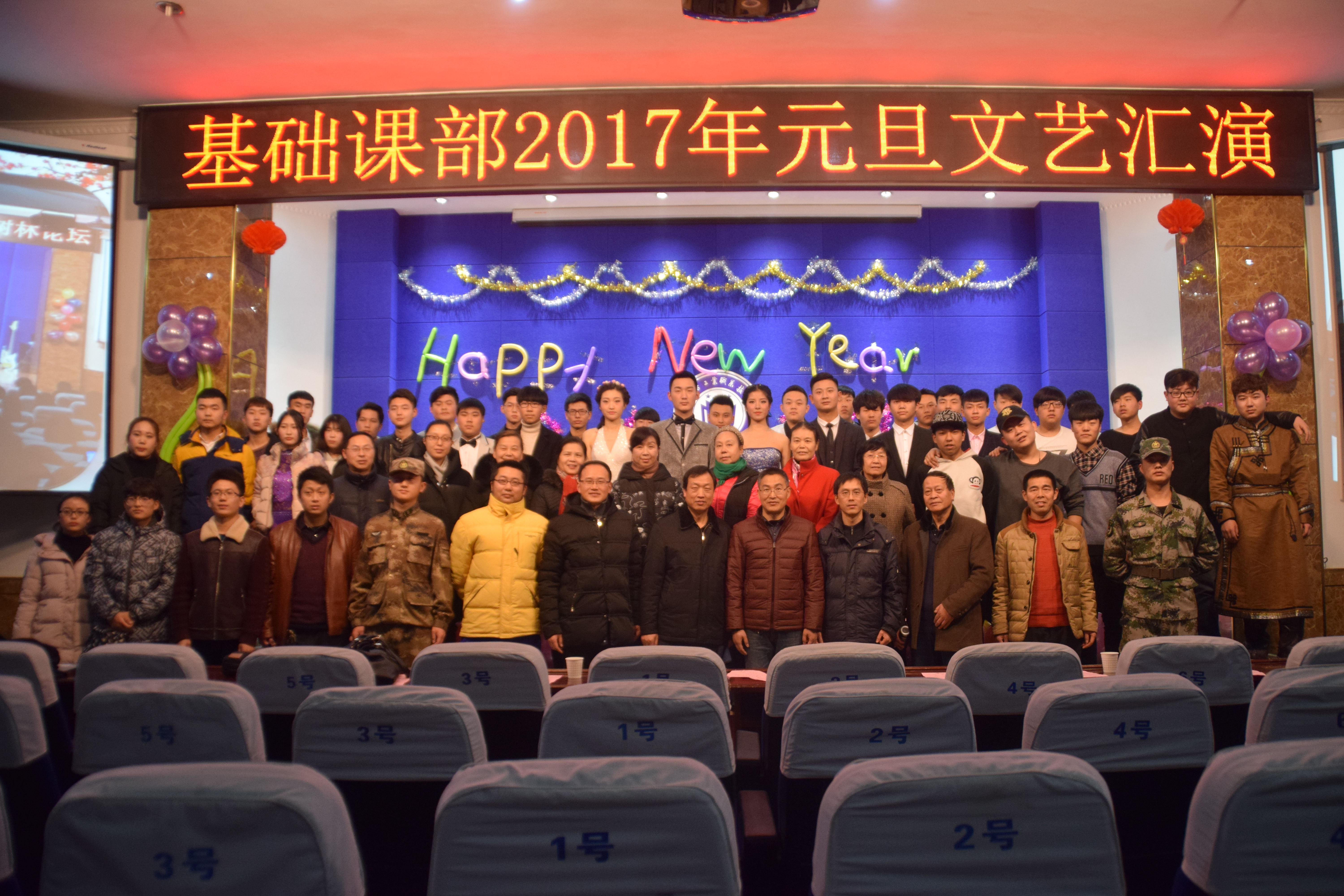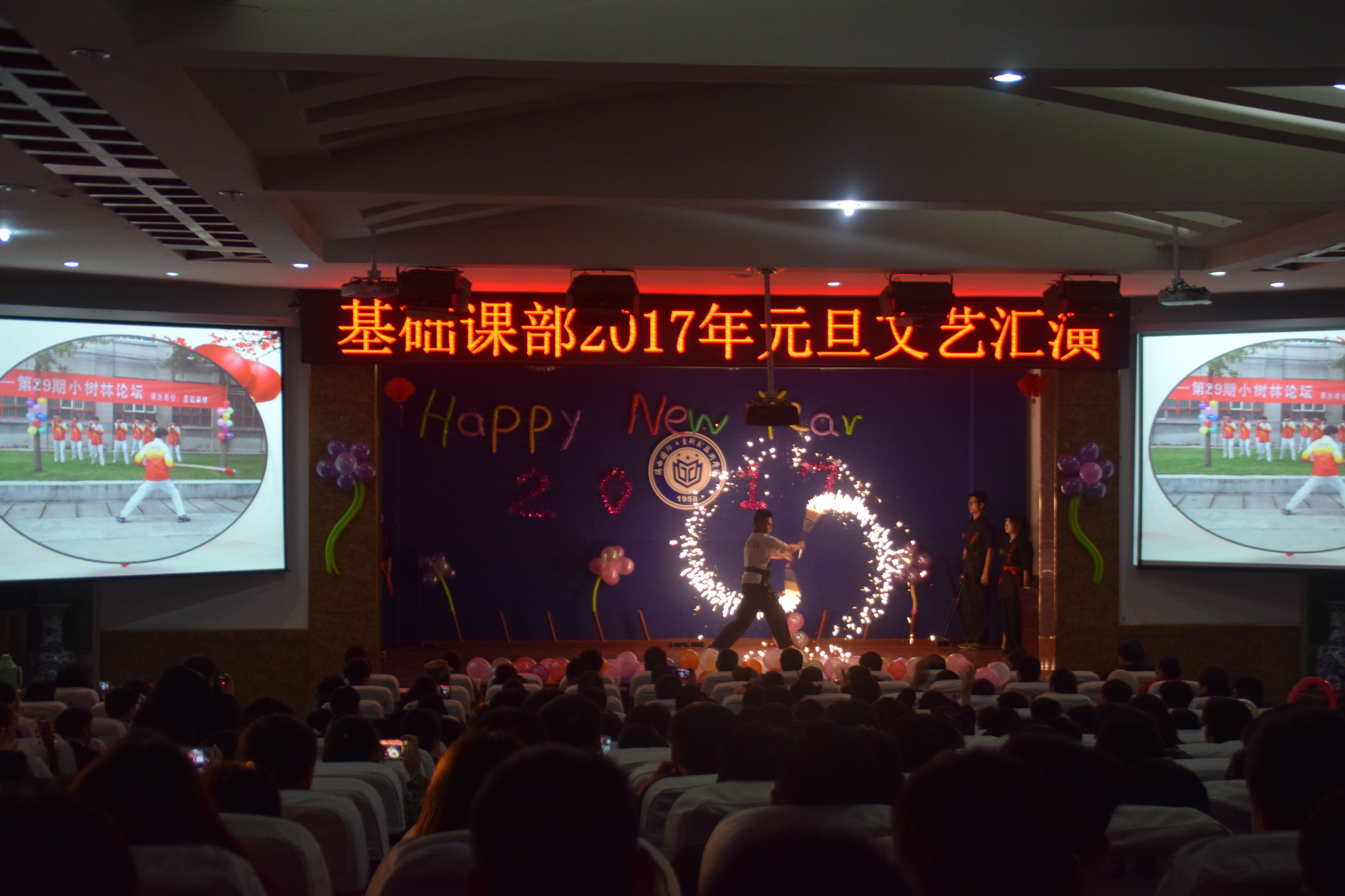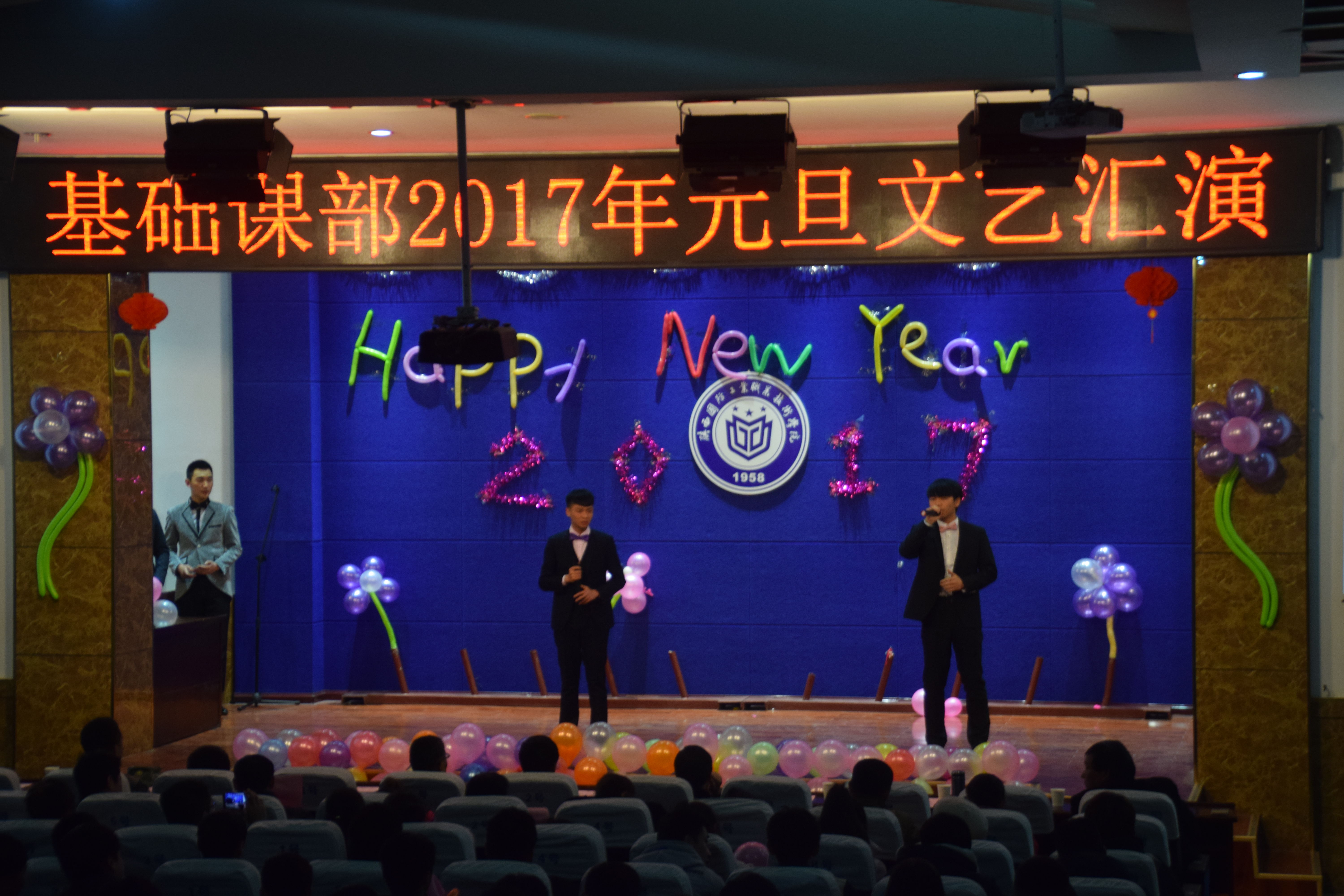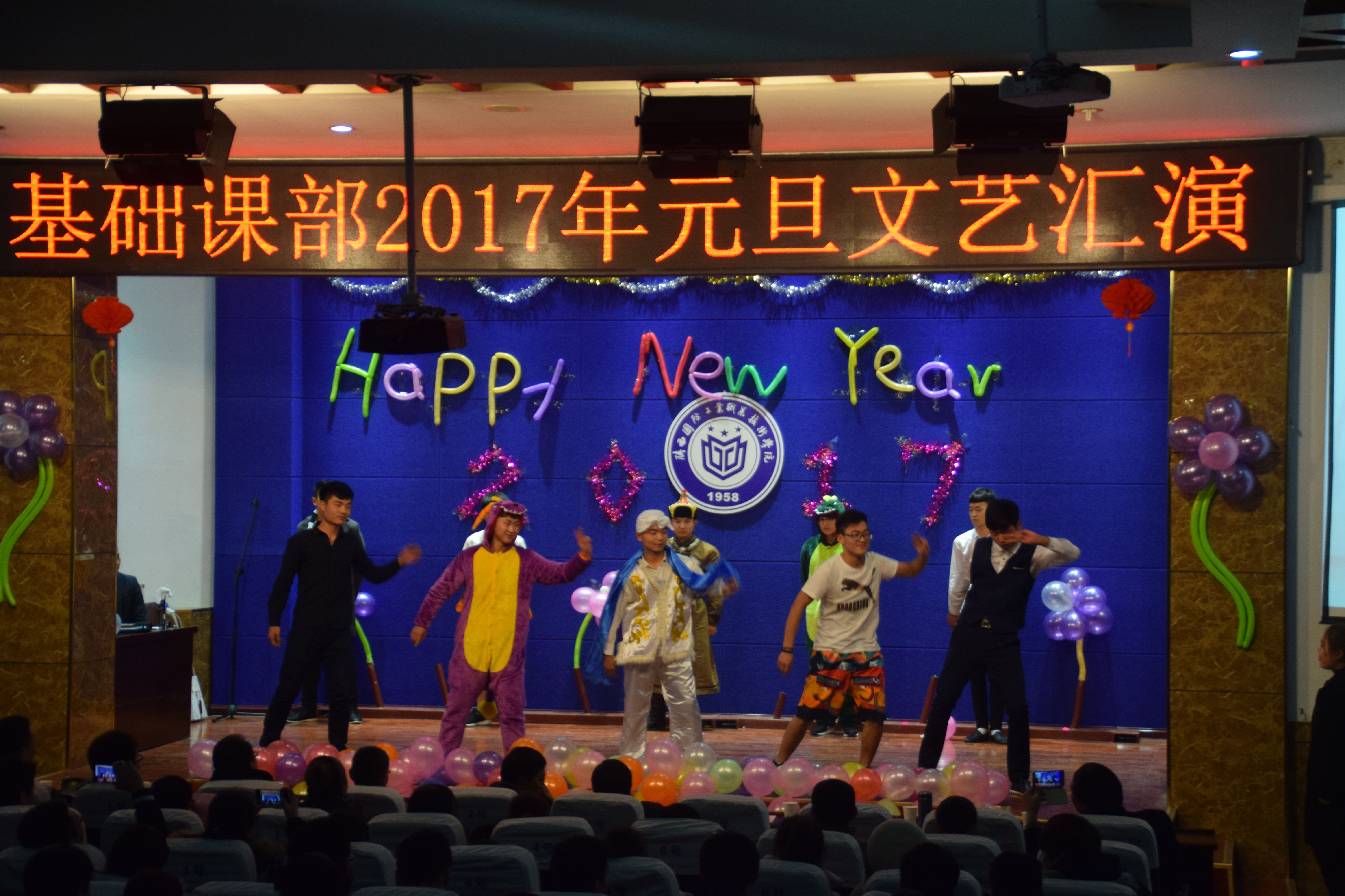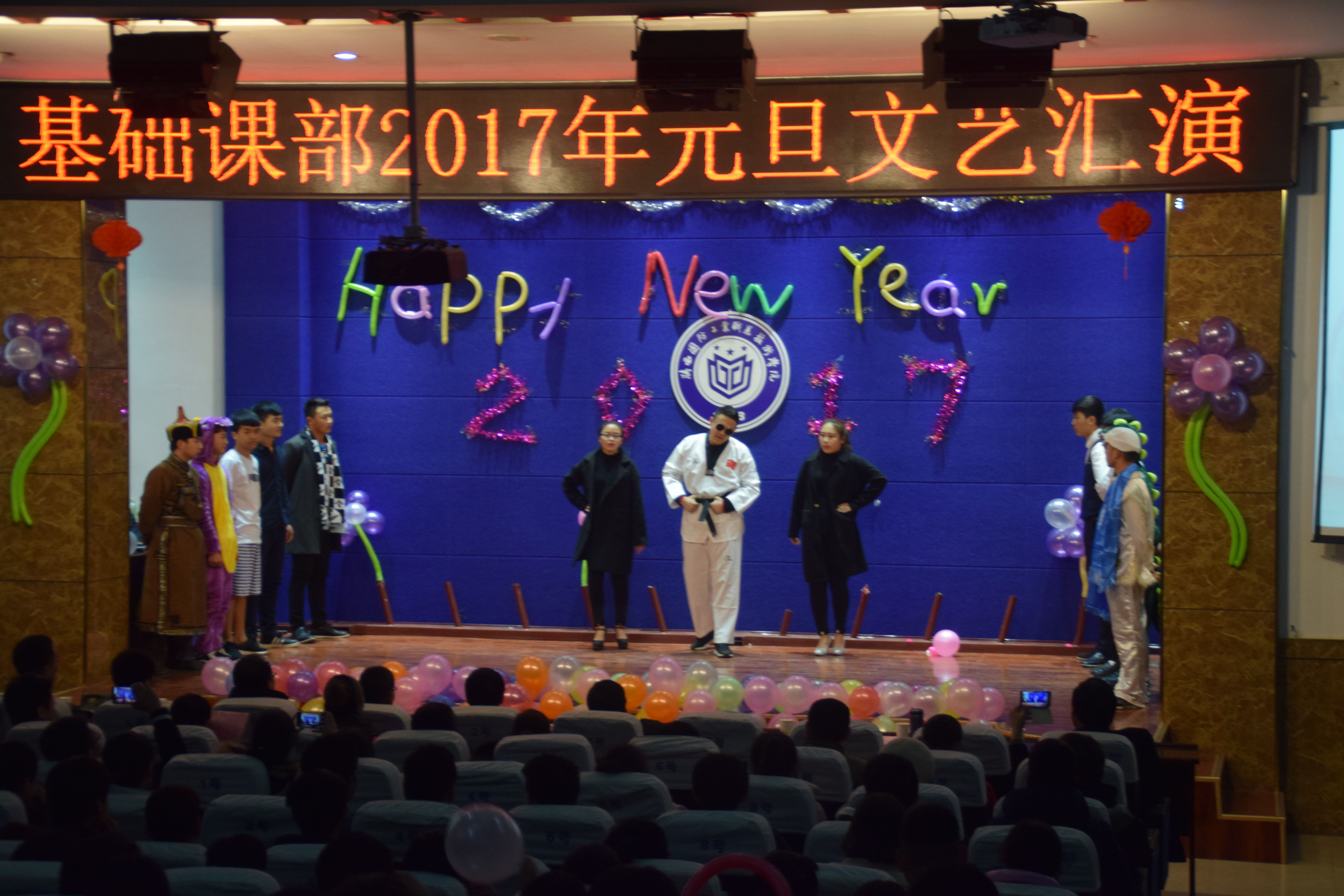 12月28日,下午4:30,由基础课部举办的2017年元旦文艺汇演在我校南区报告厅隆重举行。学生保卫处副处长张鹏老师、基础课部主任成均孝老师、基础课党总支书记杨文革老师、建筑与热能学院党总支书记张向阳老师及基础课部全体辅导员、教官与四百名同学一同观看了这场青春盛宴。