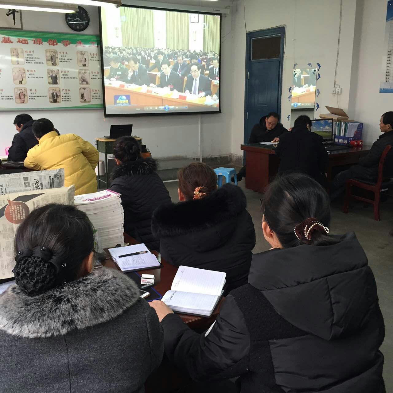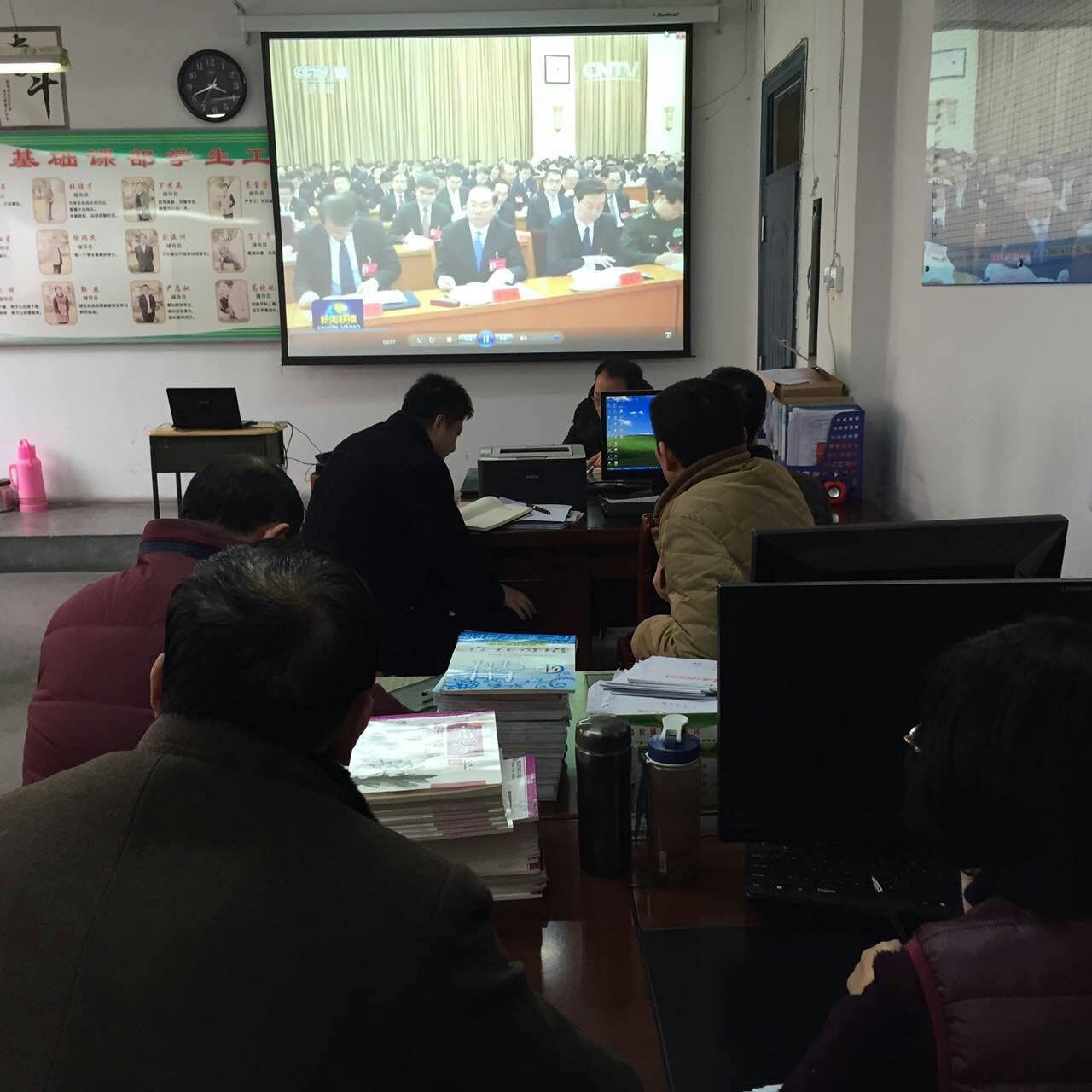 2016年1月3日下午3:30,基础课部组织全体辅导员、教官、学生管理人员在南区教1-313教室进行政治理论学习,会议由党总支书记杨文革主持。