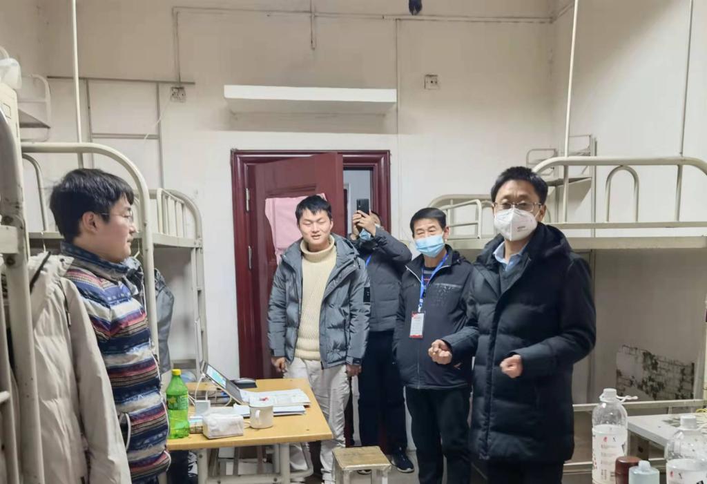 在元旦佳节即将到来之际,2021年12月31晚,我校副校长孟繁增代表学校领导班子走进南校区学生公寓,走访慰问在校毕业班学生,南校区疫情防控工作小组全体管理人员陪同走访。