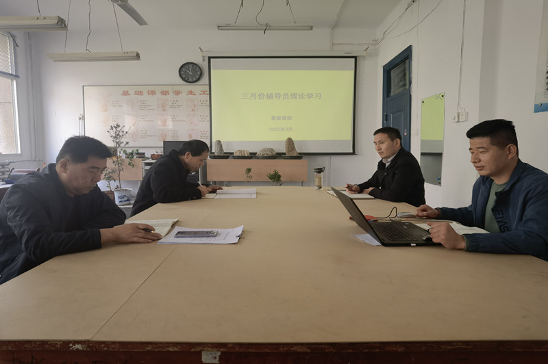 根据陕国职学工字〔2023〕14号文件《关于开展三月份辅导员理论学习的通知》相关要求,为加强基础辅导员队伍建设,进一步提升辅导员的理论水平、业务能力和岗位任职能力,构建辅导员长效学习机制,基础课部于2023年3月30日上午在南校区教1-313办公室组织三月份辅导员理论学习。