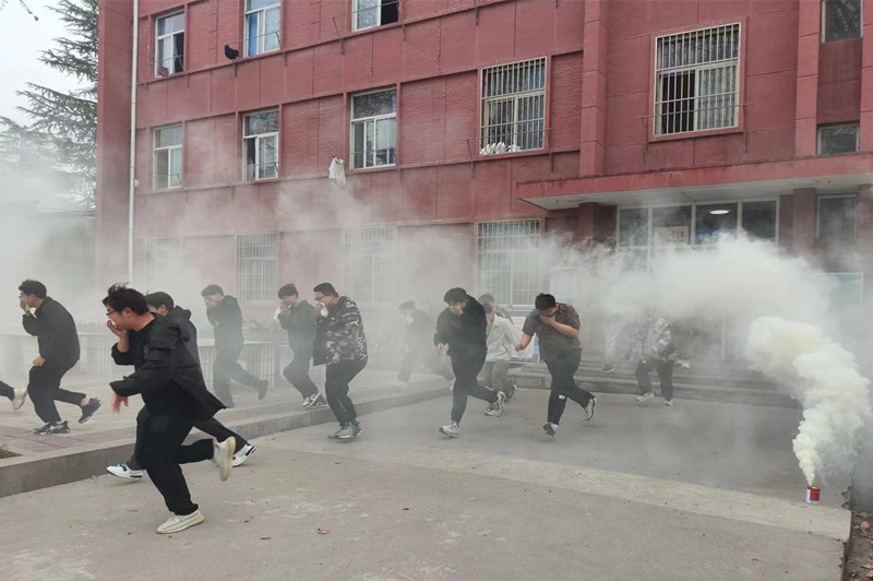 为进一步提高师生消防安全意识,保障师生生命财产安全,增强预防抗御火灾能力,落实消防工作管理要求,推进平安校园建设工作,2024年3月27日下午四点,我校在南校区开展了一场紧张有序、高效实用的火灾疏散逃生演练。