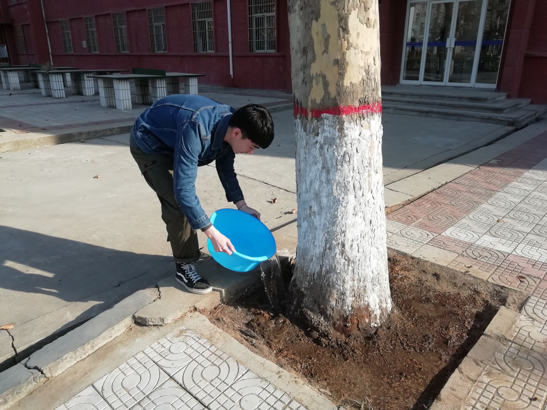 在我国第41个植树节来临之际,基础课部广大团员干部和入党积极分子们于3月12日下午4:30手持水盆和清理工具,来到校园小树林和教学楼下为树木浇水,清理树下垃圾。同学们分工明确,整个活动现场大家互帮互助,气氛活跃,充分享受着植树节活动带来的乐趣。