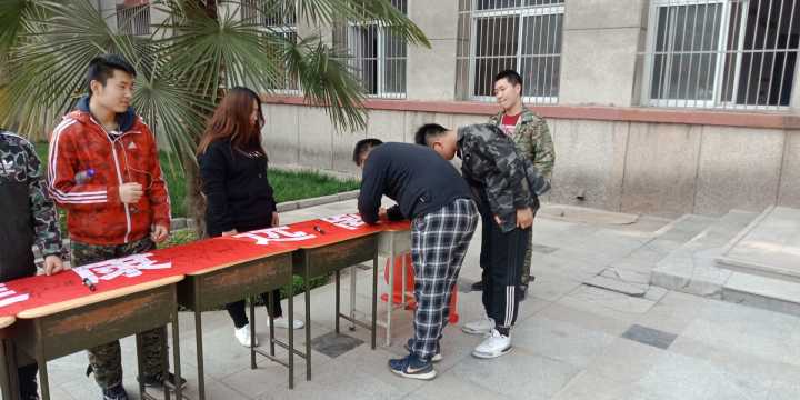 为营造积极健康的校园氛围,抵制社会不良风气,提醒大学生爱护自己的身体,充分认识到吸烟对人身健康的危害,减少在烟草上的花销。基础课部于2019年3月26日下午16:30在一号教学楼前开展了禁烟签名活动,并对禁烟活动检查中没收的香烟、打火机等物品进行展出。本次活动同时开展健康教育宣传,给广大同学普及烟草的危害,引导青少年对健康生活的追求。基础课部学生会成员率先在横幅上签下自己的名字,表明了禁烟的决心,大家都积极地配合着工作人员有秩序地进行活动,在宣传横幅上留下自己的名字,支持戒烟活动,并号召更多的同学们加入无烟校园的大队伍。